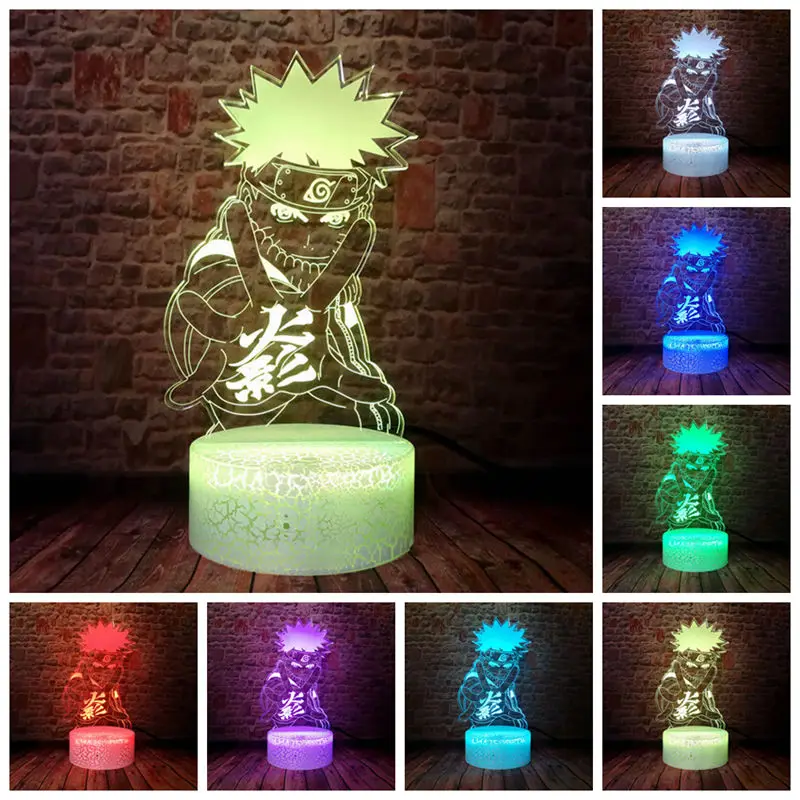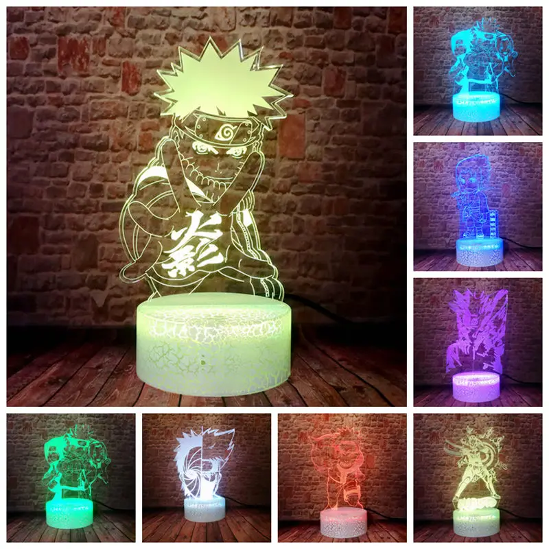 Anime Figure Naruto Flashing Model 3D Illusion LED Desk Nightlight Colorful Changing Light Manga Ca